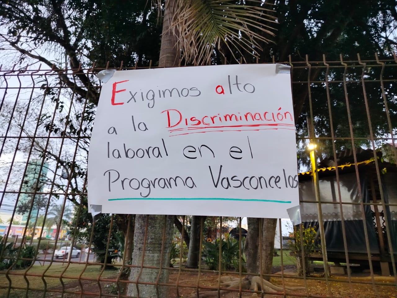 Desde las primeras horas, los manifestantes colocaron lonas en el acceso principal y en distintos puntos del edificio con mensajes como: