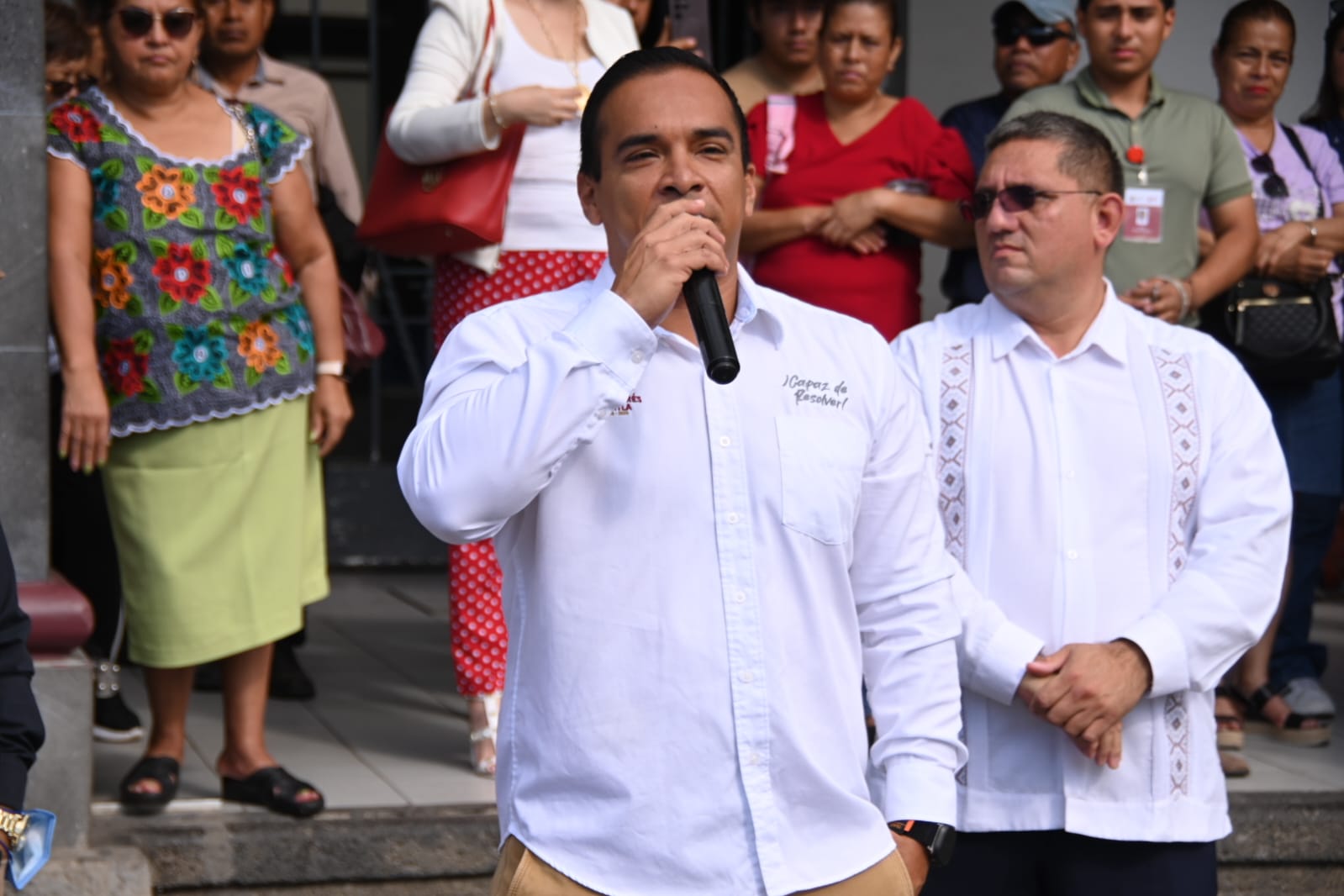 El encargado de recibir este sábado a las distintas delegaciones de bailarines fue el director de Identidad y Convivencia Municipal, Víctor Hugo Gómez Santos, quién en nombre del alcalde Rafa Fararoni Magaña, les dio un caluroso recibimiento a los tuxtlas.