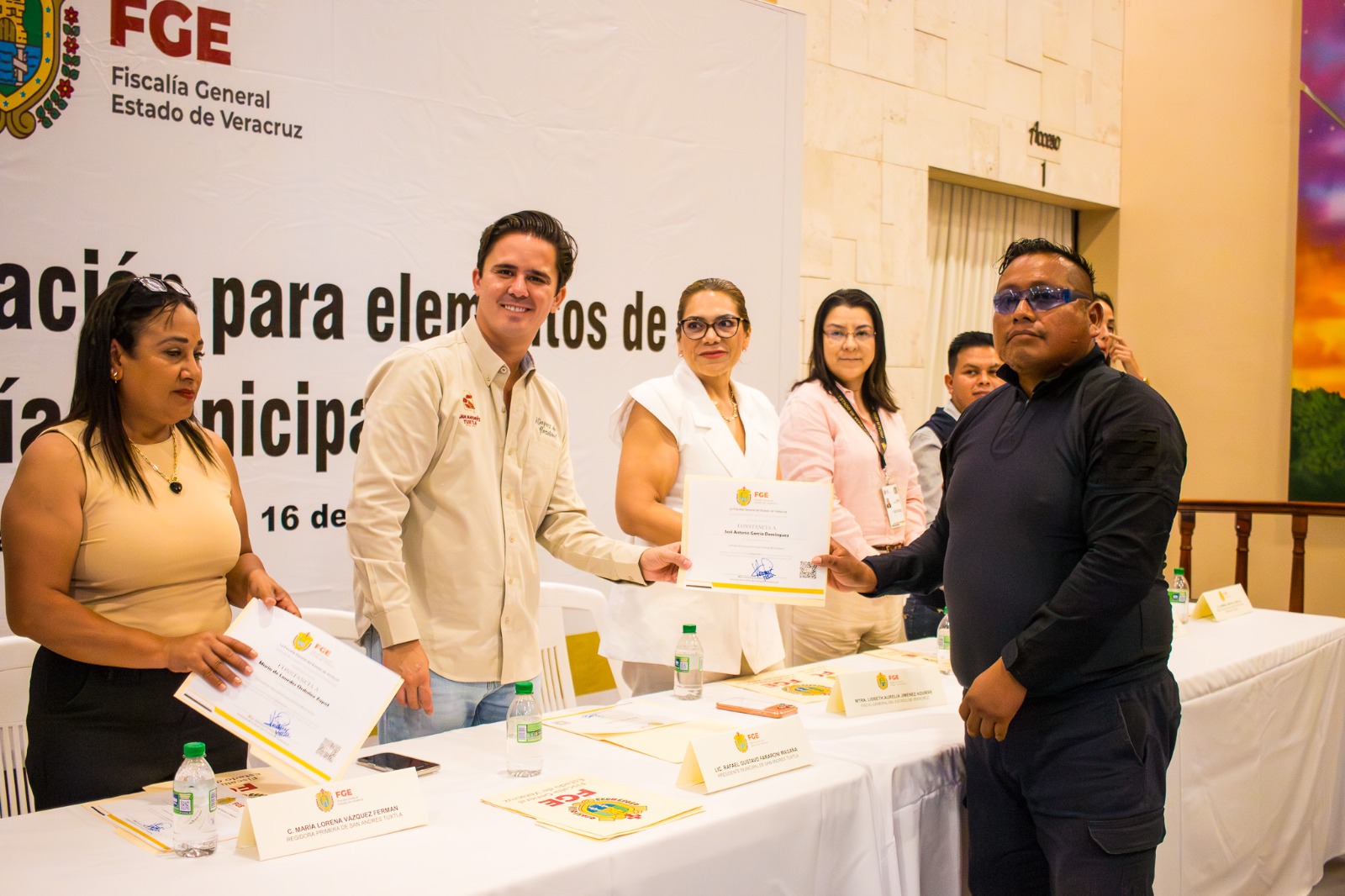 La FGE Veracruz entregó este día constancias de la capacitación concluida a policías de San Andrés Tuxtla, Hueyapan de Ocampo, Lerdo de Tejada, Ángel R. Cabada, Santiago Tuxtla y Catemaco.